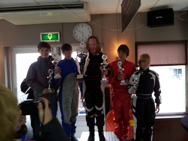 De wedstrijd werd zondag 18 maart verreden op het kartcircuit in Emmen. Het weer was ’s ochtends nog regenachtig en de kwalificatie werd dan ook gereden op regenbanden. Ik heb een goede kwalificatie gereden en mocht daarom de eerste manche als tweede starten. Inmiddels was de baan droog voor de eerste manche begon en konden de regenbanden worden verruild voor de slicks. Ik kwam in die eerste manche als derde over de finish. In de tweede manche mocht ik van startpositie 3 vertrekken. Dit wist ik helaas niet vast te houden en eindigde uiteindelijk na een spannende strijd op een vierde plaats. De resultaten van de 2 manches samen bepalen het dagklassement. Ik had samen met Ray Renirie uit Nieuwegein een gelijk aantal punten na de 2 manches. Doordat ik een betere tijd neerzette in de kwalificatie werd ik derde en Ray Renirie vierde. Op deze manier is de kwalificatie dus van groot belang voor het dagklassement.