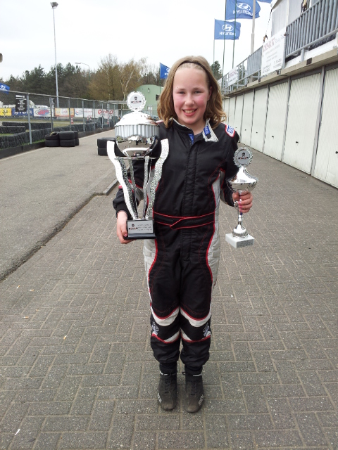 De eerstvolgende wedstrijd is op zondag 8 april op Circuit Park Berghem. Ook dan zal ik, als enige dame in deze klasse, de strijd weer aangaan voor een podiumplaats.